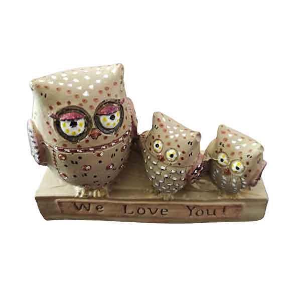 This cute owl family would suit any room in your home. Completely hand painted and hand drawn. It is beige in color. Different and original patterns were used in its design. On the bottom it says ‘we love you!’.